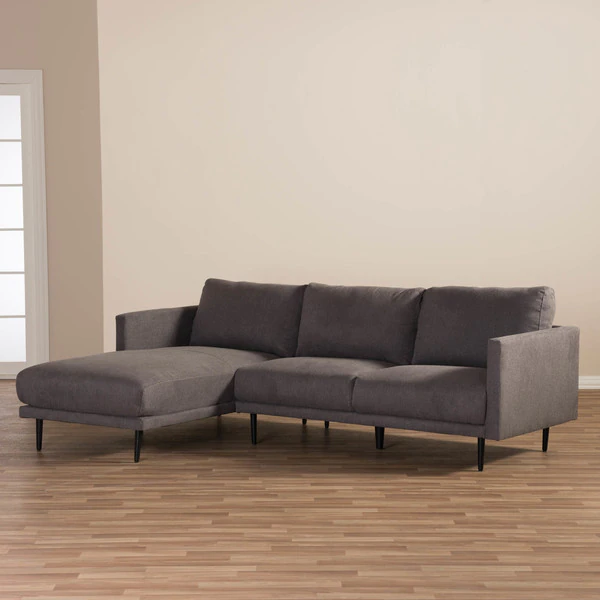 With a gentle gradient across the backrest, the Riley left facing chaise sectional sofa offers a comfortable seating position, striking the ideal balance between sink in comfort and ample support. Constructed of plywood frame, the Riley is upholstered with S-spring, fix cushion, foam and pocket spring for ultimate seating comfort. Metal legs support the sectional sturdily. Available in grey fabric, the Riley features neutral tone that will match with your home decor. The perfect blend of good looks and practical seating, the Riley 2-piece sectional sofa is built for comfort at home. Perfect for those who want to lean back, put up their feet and get comfortable. The Riley requires assembly.
