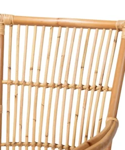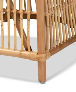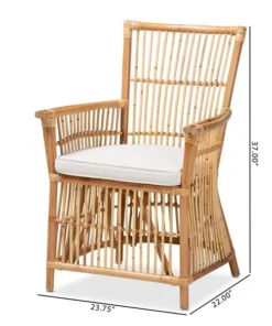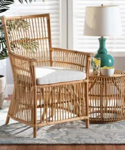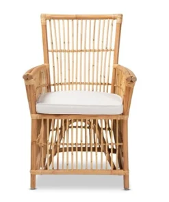 Baxton Studio Rose Modern Bohemian White Fabric Upholstered and Natural Brown Rattan Armchair