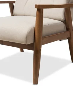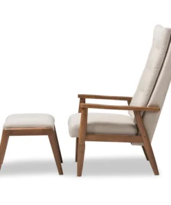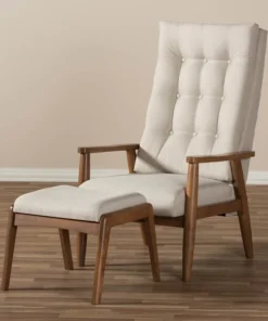 Inspired by the Danish designs, this stylish lounge chair and ottoman set uses solid rubberwood frame in dark walnut finishing to create a mid-century lounge chair set that will add to any mid-century decor. The little details are what makes the accent chair set special. The seat back is accented with buttons for classic aesthetic and is double-cushioned to promote ultimate relaxation. The splayed legs add a retro modern touch to this piece of clean lines furniture while the beige fabric upholstery and dark walnut wood create great contrast to go with any living space. Featuring light weight and easy handling, the Roxy will be suitable for those urban dwellers with limited space. It could be a cool-looking reading nook within 30 minutes of assembly out of a box. The Roxy leisure chair and the footstool set will be a standout piece in any modern interior.