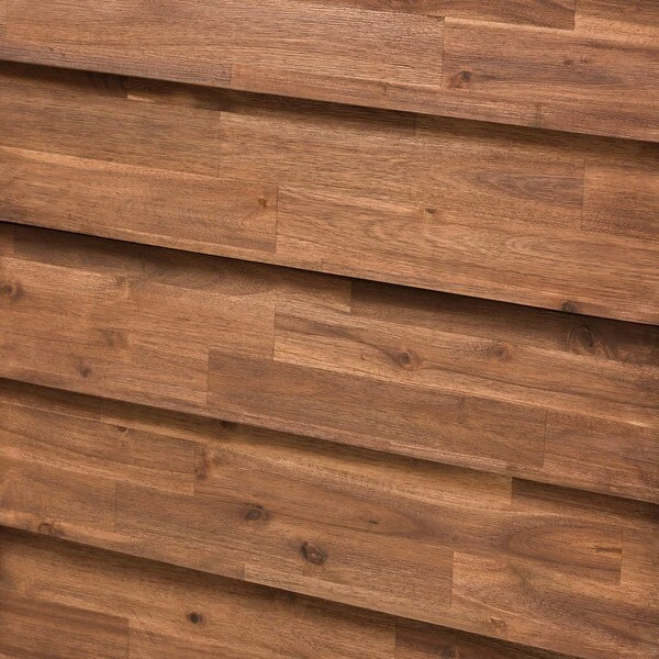 Remodel your bedroom with the clean lines and classic Scandinavian palette of the Sierra 5-drawer chest. Constructed of Acacia hardwood and rubberwood, the Sierra is built for Deep-lasting sturdiness with an easy-to-clean surface. Design features a Deep, rectangular top surface for displaying flowers and décor. Five drawers offer generous storage for bedroom essentials or linen for versatility. The slanted design of the drawers gives it extra character and individual style while the splayed legs showcasing the retro modern look of the collection. Metal hardware and drawer runner ensure Deep-lasting goodness and functionality. Rain oak finishing offers warm look and mid-century modern aesthetic into your bedroom. The Sierra wooden chest requires legs assembly.