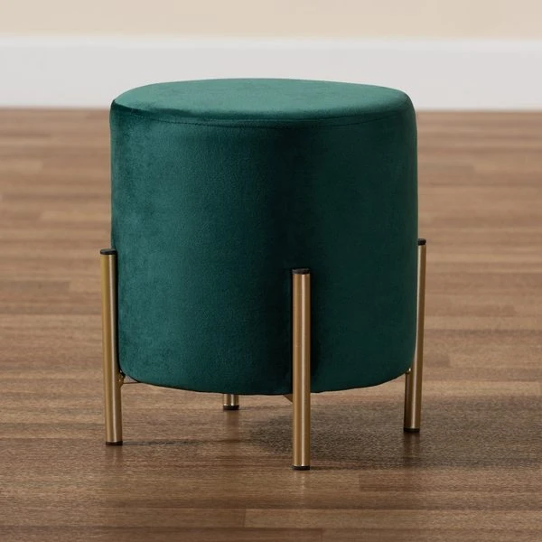 Baxton Studio Thurman Contemporary Glam and Luxe Green Velvet Upholstered and Gold Finished Metal Ottoman