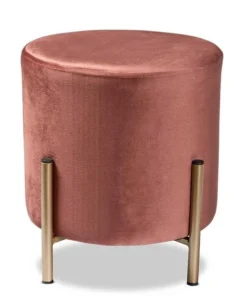 Baxton Studio Thurman Contemporary Glam and Luxe Pink Velvet Upholstered and Gold Finished Metal Ottoman