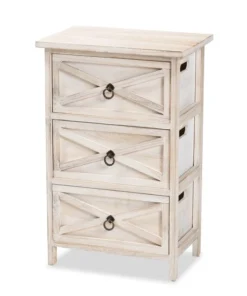 Baxton Studio Tracen Rustic and Modern Light Brown Wood 3-Drawer Storage Unit