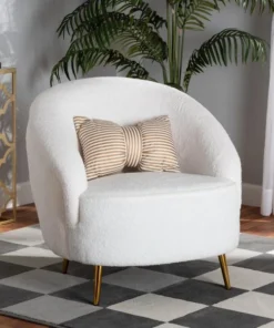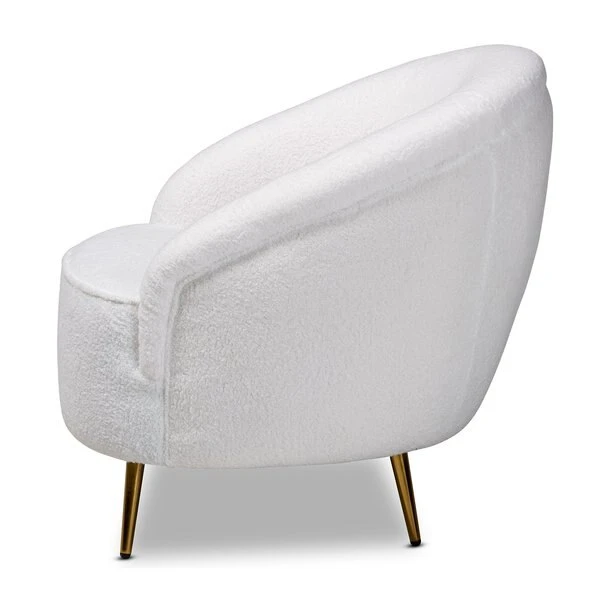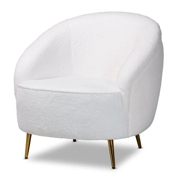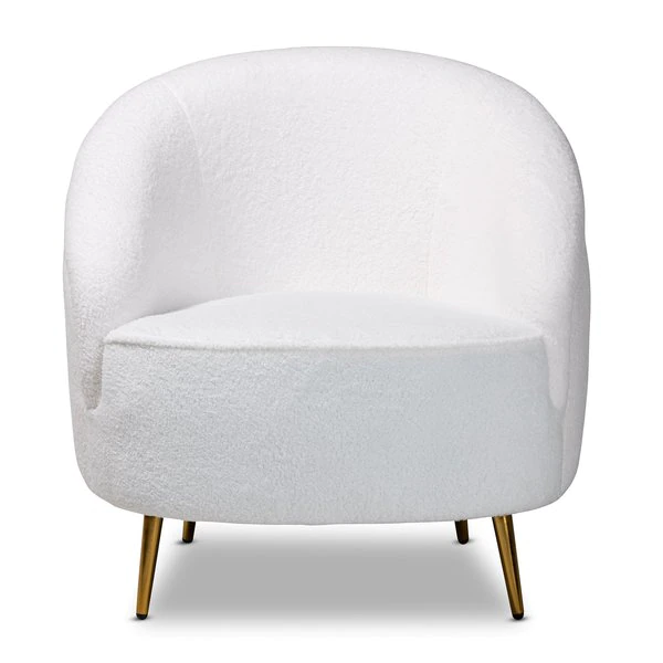 Baxton Studio Urian Modern & Contemporary White Boucle Upholstered and Gold Finished Metal Accent Chair