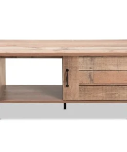 Add valuable space to your living room with the rustic personality of the Vaughan coffee table. Made in Malaysia, the Vaughan is constructed from wood showcasing a distinctive rustic oak brown finish. An enclosed shelf behind the door provides secure storage space for all your living room essentials, while the open shelf provides display space. Requiring assembly, the Vaughan is accented with black metal handles for an industrial touch. A superb blend of handy design and modern convenience, the Vaughan coffee table is an exceptional addition to the modern home.
