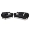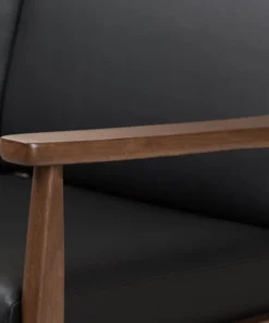 Look forward to unwinding after a long day, with the casual and relaxing design of the Venza 3-piece living room sofa set. Constructed of solid rubberwood frame for strength and long-lasting durability, this mid-century modern-inspired sofa set is built with clean paneled lines on the back, bringing relaxing vibes into your living room and complementing your home with lavish style. Cushions are upholstered in a soft but resilient black faux leather for plush comfort and lasting good looks. Featuring splayed legs with sloping arms for a mix of minimalist and contemporary styling in your space, the Venza is perfect as a lounge seating set or an occasional seating set in your living area, bedroom, or in a lounge arrangement, public waiting area or private office. The Venza requires assembly.