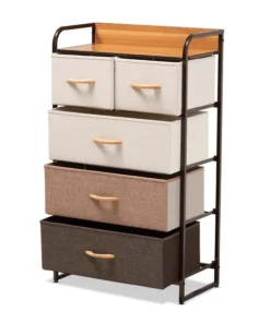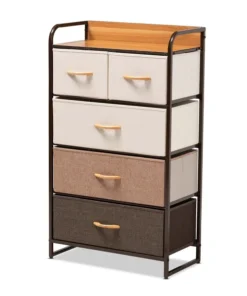 Baxton Studio Volkan Modern Multi-Colored Fabric Upholstered and Black Metak 5-Drawer Storage Cabinet