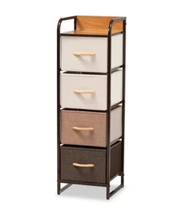 Manage the needs of your home with the outstanding versatility of the Volkan storage cabinet. Made in China, this cabinet is comprised of a solid metal frame fitted with wood shelves and fabric upholstered drawers. Four drawers offer exceptional storage space to organize your belongings while the wide shelf creates a lovely display for decorations. Requiring assembly, the Volkan features curved drawer handles that stand out against the wood. A fantastic solution to your storage needs, the Volkan cabinet transforms the atmosphere of any space.