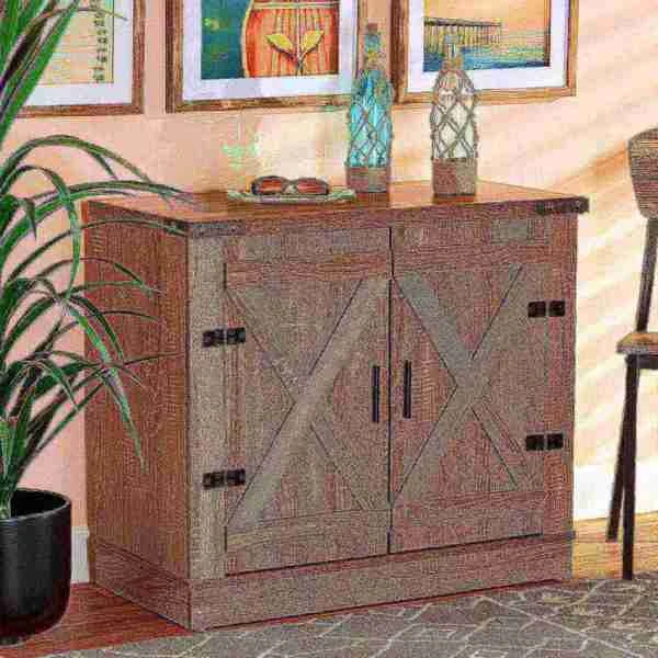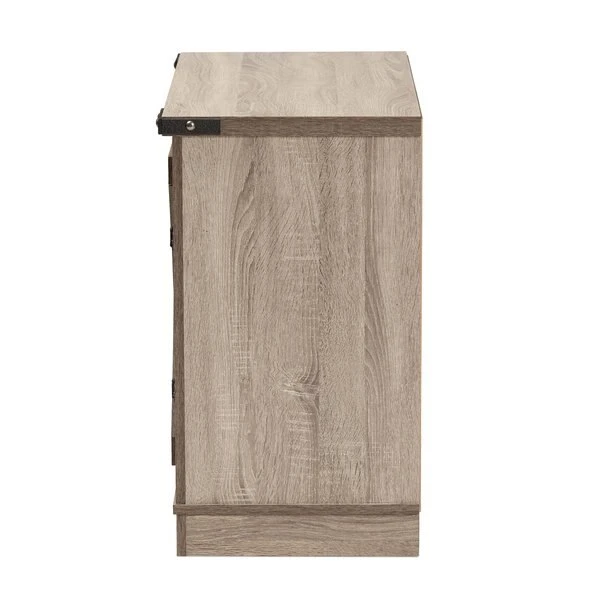 Featuring an eye-catching farmhouse inspired design, the Wayne shoe cabinet is a stylish solution to organizing your entryway. Made in Malaysia, the Wayne is crafted from sturdy wood finished in a light oak brown. The hinged doors reveal three spacious shelves capable of storing around 9 pairs of shoes, depending on size. Requiring assembly, the large, rectangular tabletop offers ample surface area to place keys, mail, and other miscellaneous items. Showcasing a striking aesthetic that adds personality to any space, the Wayne shoe cabinet is sure to elevate any home.