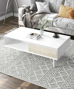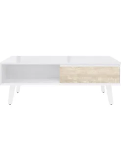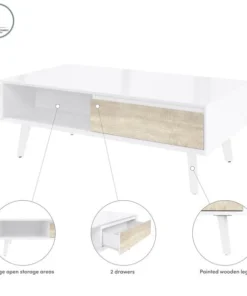 Your living room will look amazing once you add this beautiful and stylish Coffee Table. The additional storage space is ideal to keep your space clean and organized. You can use the drawers to organize your small living room accessories, and the open storage areas for big items like board games and books. The top of the table is perfect to display your decorations such as picture frames and candles. For a final contemporary touch, the painted wooden legs are perfect.