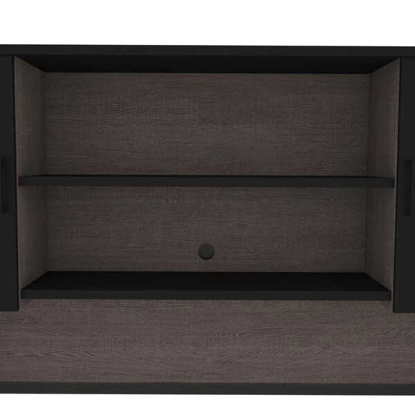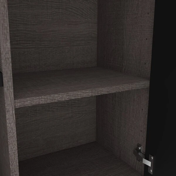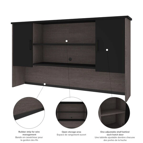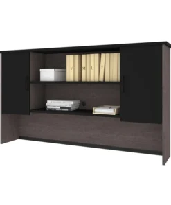 The Norma Collection is ideal for any type of office. You can easily arrange the pieces in this collection to fit your needs by adding a desk shell or a hutch. Keep your space organized with the multiple storage options. Not only will your space be clutter-free, it will also feel modern and stylish thanks to the two-tone design and the metal handles with black finish. Enhance your space with this affordable collection! Features 1 open storage compartment (38.8′′ W x 25.3′′ H x 10.6′′ D) with 2 adjustable shelves and 1 adjustable shelf behind each of the 2 doors. One grommet and a rubber strip for efficient wire management. Finished back. Made of laminated, high-density commercial-grade particle board, compliant with Carb phase 2. Meets or exceeds ANSI/BIFMA safety and performance standards. The top of the hutch and each shelf in the open storage area can support up to 25 lb.