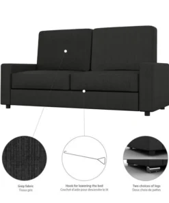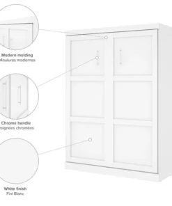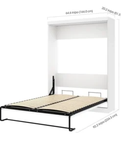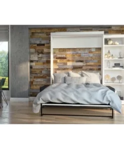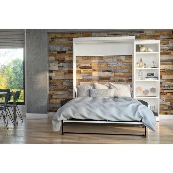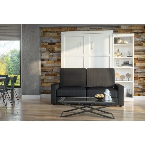 This set includes a Queen Murphy Bed, one Storage Unit and a Sofa. Queen Murphy bed and one Storage UnitCombining style and convenience, Pur by Bestar is the perfect solution to furnished condos, lofts, studios, guest’s rooms and home offices. The collection brings multi functionality to a single room. The kit comprises a queen Murphy bed and a 25“ storage unit. The mechanism provides simplified assembly of the Murphy Bed. Increased comfort due to Euroslat mattress support system. Simple and safe dual piston system makes opening and closing user-friendly. Easy to use; use the handle to pull the bed towards you to lower the bed and flip the leg down onto the floor. Accommodates a standard queen mattress up to 12“ thick and weighing at least 70 lbs. Maximum dimensions of the mattress are 60“ X 80“. Mattress not included; Box spring not required. Front panel is installed as one of the last steps making the mounting to studs in a wall much easier. The minimum height required of the ceiling is 91 in. Clearance of 9. 4“ under the bed when it is open. Bed when opened will require a clearance of 101“. The storage unit has 2 fixed and 3 adjustable shelves to maximize your options. Shaker-inspired trim and metal handles on Murphy bed. Assembly required. Easy to install. Murphy bed : 64. 6“ (W) x 20. 3“ (D) x 89. 1“ (H). 25‘‘ storage unit : 25“ (W) x 18. 2“ (D) x 83. 7“ (H). Sofa for Queen Murphy bed – fabric WE3QUALITY MATERIALS: Suspension is made with 9-gauge sinuous coils. Seat cushions are filled with non-glue cotton covered with D30 foam. 2” high plastic or chrome legs. Hardwood frame. SPACE-SAVER: The sofa and Murphy bed combination is the perfect solution for making the most out of your space. It offers both a place to sit and a place to sleep in very little space. To fold out the bed, simply remove the cushions and lower the bed. COMPATIBLE: The sofa can be used as an add-on to any of Bestar’s Queen Murphy bed. Alternatively, it can be placed against a wall. You can choose either plastic or chrome legs. COMFORTABLE: The seat cushions are 7. 9” thick. All fabrics have a heavy duty backing. No nails are used, only staples. NOTE: Pre-assembled, except the legs. Overall dimensions: 78” W x 33. 5” D x 39” H. Must be placed against a murphy bed or a wall to support the back cushions. Cannot be placed in the middle of a