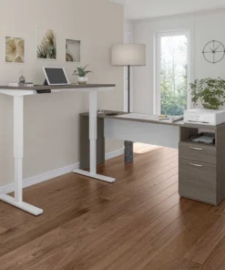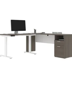 Whether you‘re working from home or at the office, an ergonomic workstation is a must. This L-shaped standing desk allows you to work while sitting or standing. You can save your favorite heights and automatically switch positions at the push of a button. The storage cubby and drawers allow you to store daily supplies and maintain a clutter-free desktop. Cable management is a breeze thanks to the grommet on the desktop, and you can easily charge your most used devices thanks to the USB/power outlet. Choose this desk for ultimate comfort and productivity.