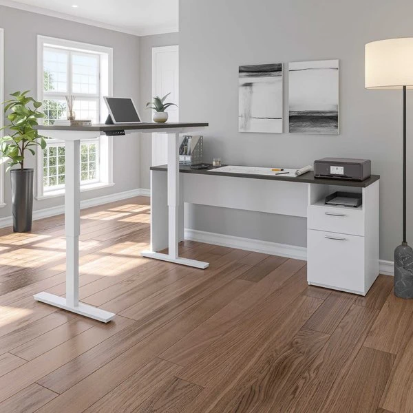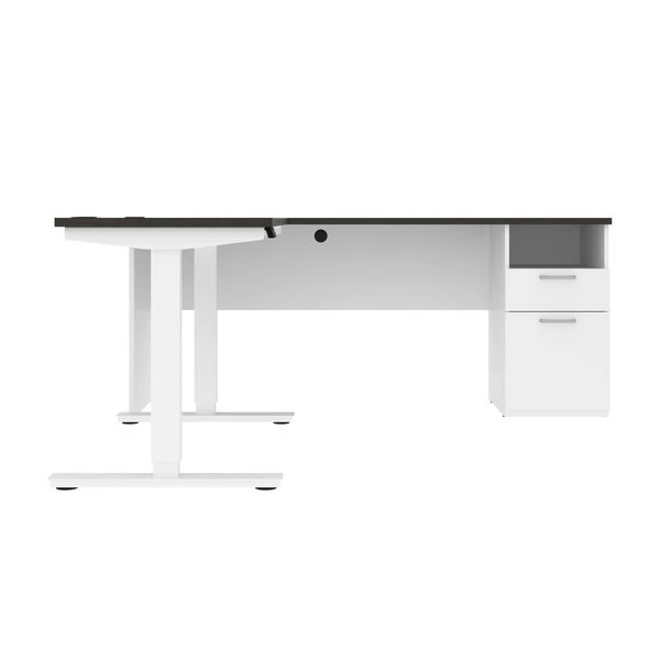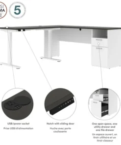 Whether you‘re working from home or at the office, an ergonomic workstation is a must. This L-shaped standing desk allows you to work while sitting or standing. You can save your favorite heights and automatically switch positions at the push of a button. The storage cubby and drawers allow you to store daily supplies and maintain a clutter-free desktop. Cable management is a breeze thanks to the grommet on the desktop, and you can easily charge your most used devices thanks to the USB/power outlet. Choose this desk for ultimate comfort and productivity.