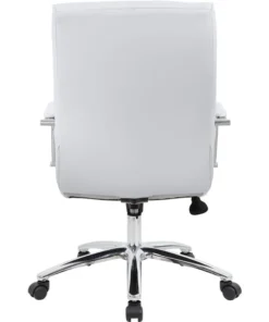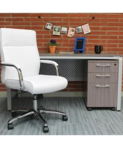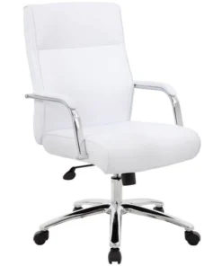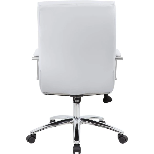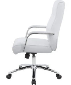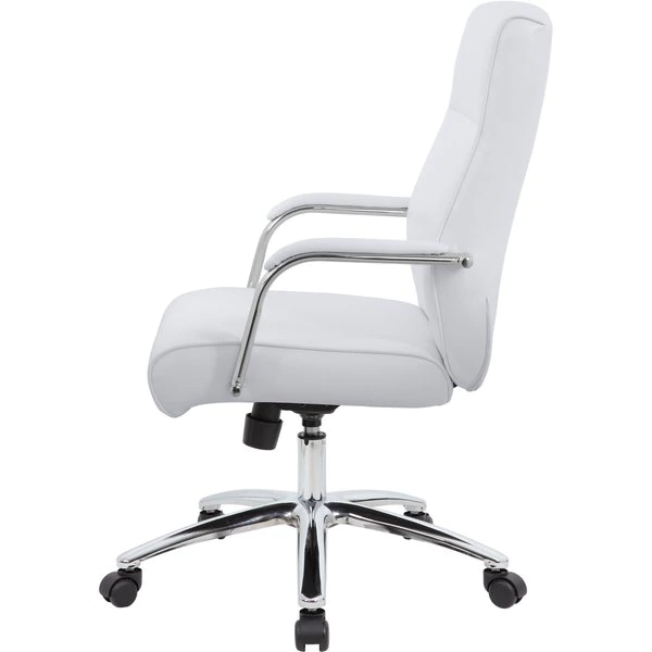 Executive Chair, Executive Chair, Back Color Family White, Back Material Family Vinyl, Seat Material Fabric, Back Material Fabric, Nominal Seat Height Range 19 in to 22 in, Seat Color White, Weight Capacity 275 lb, Unassembled, Seat Height Min. 19 in, Seat Height Max. 22 in, Back Height 25 in, Arm Style Fixed, Caster Type Carpet, Overall Height 43 in, Overall Width 30 in, Overall Depth 23 in, Seat Width 20 in, Seat Depth 18 1/2 in, Back Width 20 in, Number of Casters 5, Number of Glides 0