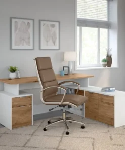 Featuring a multipurpose design that's both stylish and practical, the Bush Business Furniture Jamestown Low Storage Cabinet with Doors and Shelves makes a great addition to any modern professional office. This versatile organizer can be used on its own as a standalone storage credenza or as a return to form an L shaped desk with coordinating 60W and 72W work surfaces (sold separately). The durable surface supports up to 200 pounds while open and closed compartments each include one adjustable shelf to accommodate everything from reference materials to decorations. Cabinet doors feature attractive Brushed Satin Nickel handles and open on smooth Euro style hinges for an effortless reach to contents. This 60W x 16D x 21H Storage Cabinet is finished on all sides for versatile placement in a private office or open floor plan and includes adjustable levelers for improved stability on uneven floors. Choose from stylish White with Fresh Walnut, White with Storm Gray or solid Storm Gray finishes to find the perfect look for any work environment. Named in honor of Bush Business Furniture's Western New York headquarters, the Jamestown Collection celebrates both the brand's heritage and its commitment to providing solutions that meet the evolving needs of professional offices. This commercial-grade low storage credenza is tested to meet ANSI/BIFMA quality standards for safety and performance.