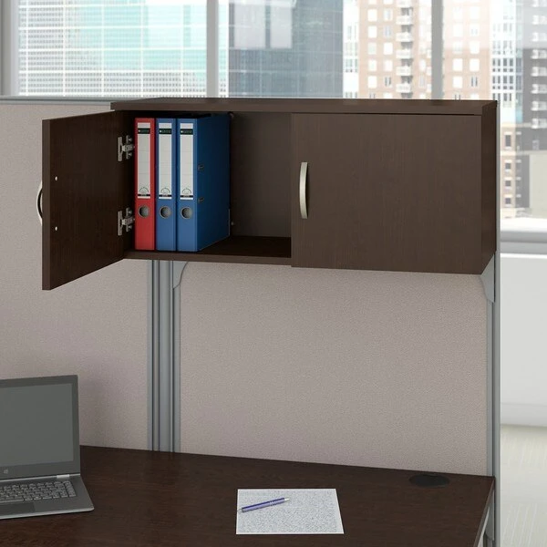 The Bush Business Furniture Office in an Hour Storage and Accessory Kit is ready when you are. This convenient accessory set includes a Storage Cabinet, Adjustable Paper Tray, Pencil Cup and Mobile File Cabinet. The assembled Storage Cabinet mounts to a framed 63H Office in an Hour Panel and includes necessary hardware. The Mobile File Cabinet drawers open on full-extension ball bearing slides for a smooth and easy reach to the back. Roll the Cabinet anywhere on convenient casters or store it under your desk to conserve space. Two box drawers work great for personal items, pens and paper, while a file drawer holds letter and legal-sized folders. The Paper Tray and Pencil Cup mount to a 48H Office in an Hour Panel to further organize your work surface. This collection turns open spaces into efficient, collaborative work environments in no time. The commercial-grade Office in an Hour meets ANSI/BIFMA standards for safety and performance. Backed by a. See the full collection for coordinating items available.