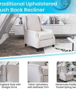 The look of leather for less makes this glider rocker with ottoman a must for any – or every – room in your home. A uniquely shaped back is accentuated with accent stitching and paired with a rounded front seat for supportive comfort. A matching ottoman offers cushioned support for your legs and invites you to put up your feet and stay awhile. Pillow armrests top the metal base. which features glide and recline mechanisms for total relaxation. Your choice of black or bone leatherette lets you dress this recliner with ottoman set up as much or as little as you like for a beautiful addition to your den or living room decor.Ottoman: 19.5"L x 15"W x 15.25"H.Width (side to side): 27.75" W.Height (bottom to top): 42.75" H.Depth/Length (front to back): 36.5" D.Fabric Content: Leatherette.Fabric Pattern: Solid.Style: Casual.Arm Type: Pillow Arm.Arm: Pillow Arm Anchored Atop Steel Frame.Seat Back: Uniquely Shaped Seat Back with Leatherette Upholstery.Seat: Leatherette Seat Cushion with Rounded Front.Leg or Skirt: Round Bases.Reclining Release: Exterior Handle.Footrest Operation: Round Base Ottoman with Glide Function.Recliner Options Available: Swivel Glider Recliner.