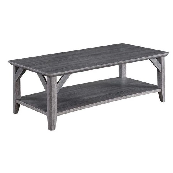 Invite your friends and family to a cup of coffee with the Winston Coffee Table by Convenience Concepts. The rustic style not only refreshes your home decor but adds a touch of nature with its wooden finish. Bringing with it the peaceful outdoor feel needed for daily relaxation. With two ample tiers. you'll have enough space for multiple coffee mugs along with living room essentials. The tapered legs add a stylish detail to this design while ensuring sturdiness. This two-tier unit is constructed from particle board and MDF and it is finished with melamine. making this piece long-lasting and easy to maintain. Ideal for your home office or den. It also comes with feet tacks for the legs that will prevent scratches on your floor. Enjoy right after with its simple 6-step assembly! Complete the look with additional items from the Winston Collection by Convenience Concepts. SpecificationsColor: Weathered GrayDimension: 47.25" L x 23.25" W x 16.5" HWeight: 38 lbs