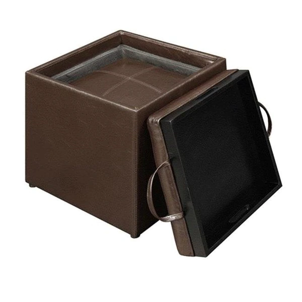 Enjoy a snack and drinks with The Deisgns4Comfort Park Avenue Single Ottoman! Featuring a reversable top cushion that can be easily transformed into a serving tray! When the tray is removed from the seating it features a storage space that is perfect to keep a cluttler free enviroment in any room. It also offer an small ottoman that is good for extra seating! Sit Back Relax and EnjoyPainted Wood Serving TrayOne Side OttomanBeautiful Durable Espresso Faux Leather with Decorative Stitching Coordinates with any décorlWill Provide Years of enjoymentDimensions: 18" H x 18" W x 18" D. Weight: 19 lbs