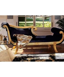 Like the famous ruler herself, our Design Toscano-exclusive, fit-for-a-queen chaise does a feline stretch in more than six feet of rich ebony fabric upholstery. With deeply hand-carved, scrolled arms and footrest highlighted with gold gilding, this Egyptian Revival work of fine mahogany furniture art boasts the sensuous curves of its fabled namesake and is sure to claim a place of honor among your treasures from around the world. Simple assembly required. 75"Wx29"Dx36"H. 77 lbs.