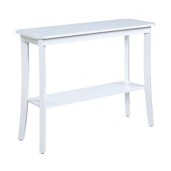The Designs2Go Baja Console Table. by Convenience Concepts is a simple timeless piece that will fit the needs of any home. Featuring a woodgrain finish. and a bottom shelf for additional storage or display area. this piece will easily complement any decor.FeaturesBottom Shelf for Additional DisplayEasy Assembly Tools ProvidedWill Complement any Existing FurnishingsSpecificationsColor: WhiteDimension: 30" H x 14" W x 38" LWeight: 21 lbs