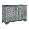Console, writing table or dressing room table, the versatility of this table is at home in any setting. The clean lines of the table top and the legs are covered in a pale taupe, faux stingray style leather, called shagreen.