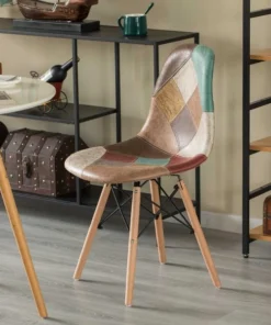 This Accent chair has a unique, bright, colorful fabric that makes it comfortable to sit on it. The modern style matches any room decor and it can be used to decorate virtually any space. The seat is fully covered with fabric which includes the seat front, back, and bottom, and the legs are wooden.