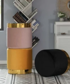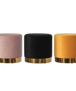 <p>Home entrances and living rooms need practical and decorative furniture to make home feel more inviting. This round cylinder stool invites decorative charm and practical functions wherever placed. Velvet fabric composition offers a durable and comfortable seat to use as an ottoman, foot stool, or vanity stool. Thick velvet on a sturdy metal base makes it durable to use. Plush velvet top and gold finish combine to create a stylish piece</p><ul><li>SIZE: 15.75" Dia. x 15.75" H</li><li>MATERIAL: Durable metal base for continual use</li><li>DECOR: Velvet top and gold metal base offers a modern and chic design</li><li>USE IN: Fits into any style room such as living room, dining room, entryway, office, or bedroom.</li><li>MULTIUSE: Use as an ottoman, foot stool, or vanity stool.</li></ul>