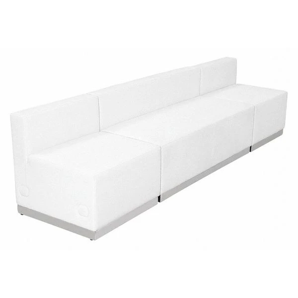 Your lobby or reception area is the forefront of your business and providing distinguished and comfortable seating is the first step towards making a great impression. This collection offers modular pieces that will allow you to reconfigure the space to accommodate your guests as your business grows. Purchase this complete set and add on any additional pieces now or later. <ul><li>Contemporary Reception Set</li><li>Modernize Your Business Office or Entry Way</li><li>Add on pieces as your business grows</li><li>Modular components make reconfiguring easy with endless possibilities</li><li>Features:</li><li>Melrose White LeatherSoft Upholstery</li><li>Exposed Embellished Stitching</li><li>Taut Seat and Back</li><li>Foam Filled Cushions</li><li>CA117 Fire Retardant Foam</li></ul>