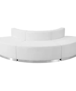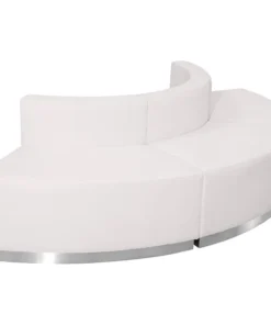 Your lobby or reception area is the forefront of your business and providing distinguished and comfortable seating is the first step towards making a great impression. This collection offers modular pieces that will allow you to reconfigure the space to accommodate your guests as your business grows. Purchase this complete set and add on any additional pieces now or later. <ul><li>Contemporary Reception Set</li><li>Modernize Your Business Office or Entry Way</li><li>Add on pieces as your business grows</li><li>Modular components make reconfiguring easy with endless possibilities</li><li>Features:</li><li>Melrose White LeatherSoft Upholstery</li><li>Exposed Embellished Stitching</li><li>Taut Seat and Back</li><li>Foam Filled Cushions</li><li>CA117 Fire Retardant Foam</li></ul>