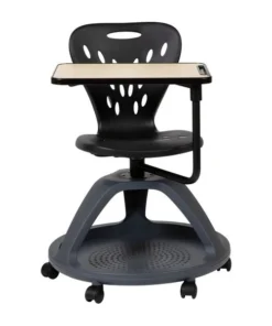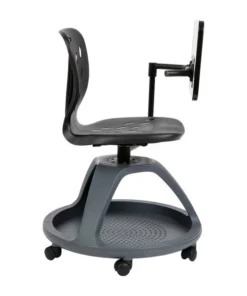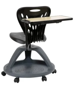 In today's world, students are more likely to work from laptops and tablets than with pencil and paper, mobile workstations can have a substantial impact on how they learn. A mobile desk chair is perfect for the 21st-century style of remote learning and collaborative classroom environments. The tablet arm provides ample work surface for a tablet or laptop and rotates 360 degrees for multi-position use. The seat swivels independently of the bottom to reach multiple surfaces without strain. Keep their work surface free of clutter and ensure each student has what they need by storing personal belongings in the built-in cubby under the seat that will hold up to 22 pounds. Recommended for 7th-grade students and up, this versatile chair has an ultra strong iron frame and will support up to 265 lbs. weight capacity. The ventilated back and seat will provide airflow to promote a better learning environment. Six heavy-duty casters and the built-in handle on the back allow this tablet armchair to smoothly move from individual to group projects, homeschool areas, and living room to dining room or kitchen with minimal effort. Chair assembles within 30 minutes with the included tools for quick setup and use. Spills clean up with a water based cleaner to keep busy classrooms moving smoothly. This multi-use mobile desk chair is ideal for classroom or distance learning and students will love having their own space that can go where they go.