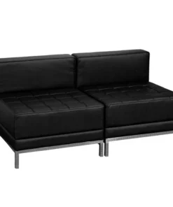 Your lobby or reception area is the forefront of your business and providing distinguished and comfortable seating is the first step towards making a great impression. This collection offers modular pieces that will allow you to reconfigure the space to accommodate your guests as your business grows. Purchase this complete set and add on any additional pieces now or later. <ul><li>Contemporary Reception Set</li><li>Add on pieces as your business grows</li><li>Modular components make reconfiguring easy with endless possibilities</li><li>Features:</li><li>Black LeatherSoft Upholstery</li><li>Smooth Back and Tufted Seat</li><li>Fixed Seat and Back Cushions</li><li>Foam Filled Cushions</li><li>CA117 Fire Retardant Foam</li><li>Exposed Accent Bar</li></ul>