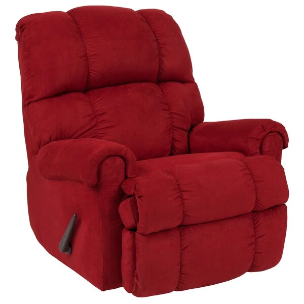 Immerse yourself in cozy warmth and softness on this plush microfiber upholstered recliner. Reclining furniture offers the best in relaxation for you to kick up your feet to watch TV, work on a laptop, or to just hang out with family and friends. With a quick pull on the lever you can situate yourself in a comfortable position. Recliners provide good neck and lumbar support, making them the most popular seating choice for everyday use. If you're in the market for a plush rocker recliner, you cannot go wrong with this very attractive contemporary piece. Use as a traditional recliner or a soothing rocker that can help those with sleep issues, nursing mothers and those great dads that help out with midnight feedings.