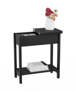 Enjoy stylish form and function in one piece, with the Flip-Top End Table by Hastings Home! The slim design of this modern end table is ideal for any bedroom, hallway, or entryway. With a unique hinged top that flips up to reveal a spacious interior compartment that's ideal for storage, this side table is the perfect spot to neatly tuck away remote controls, books, playing cards, or notepads, while the lower shelf is great for magazines or decorative items. This sturdy table is easy to assemble and comes with all necessary hardware included, as well as table leg foot pads to protect your floors. This practical clean-lined end table is an excellent addition to any space bringing transitional style to your home!