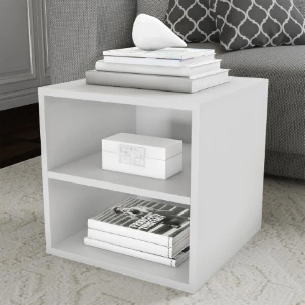 The 2-Shelf Cube End Table from Hastings Home holds up to 22-pounds on each shelf while the open design offers storage space for books, collectibles, photo frames and accent pieces. This versatile contemporary looking modular cube can be used as an end table, alongside a second unit to create a coffee table, or stacked to create a shelf using braces (not included). Constructed of durable MDF wood with a chic white veneer, this durable side table assembles in minutes with the provided hardware and will be ready to enhance your living room, office, bathroom, bedroom and more – the possibilities are endless!
