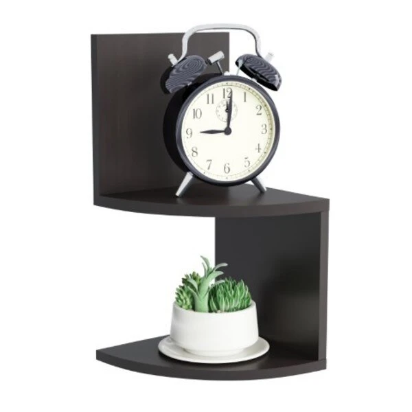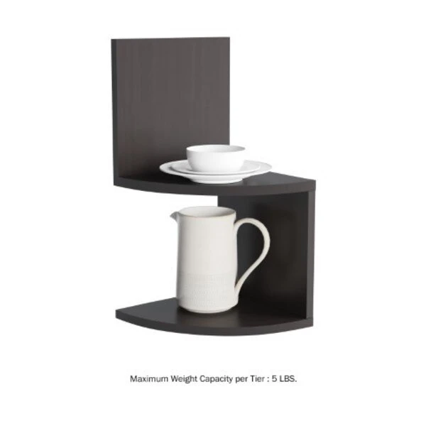 Style and function truly align with the Hastings Home Floating Tiered Corner Wall Shelf. The mounting hardware is concealed behind the sleek, zig zag style 2-tier shelf to give the floating appearance and complement a variety of home decor styles. The tiered corner shelf is perfect to bring life to an otherwise boring or empty wall corner by stylishly displaying your favorite books, decorative accents, photos, trophies, keepsakes, collectables, planters and more. Made from durable MDF wood, the shelf features pre-drilled holes and comes with the needed mounting and assembly hardware for easy installation. The shelves offer 2 tiers of ample vertical storage with beautifully styled rounded shelf corners. It is a practical solution for small space and a perfect way to add style to enhance and customize your home!