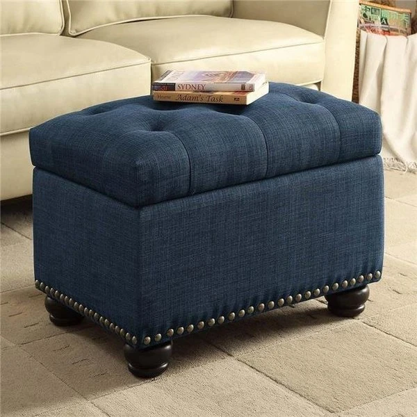 Beautiful furniture never fails to make an impact. Furniture is a big part of interior decoration. Be it for a spacious home or for a cosy apartment. a house or an office. furnish every conceivable space with our products. We provide high-quality modern furniture to be enjoyed for many years with a focus on dependability. user satisfaction. and great quality.FeaturesBlue fabricNail head beadsProduct has hinged lidTurned feetButton tuftingSpecificationsColor: BlueDimension: 18.25" H x 19" W x 24.75" L