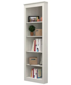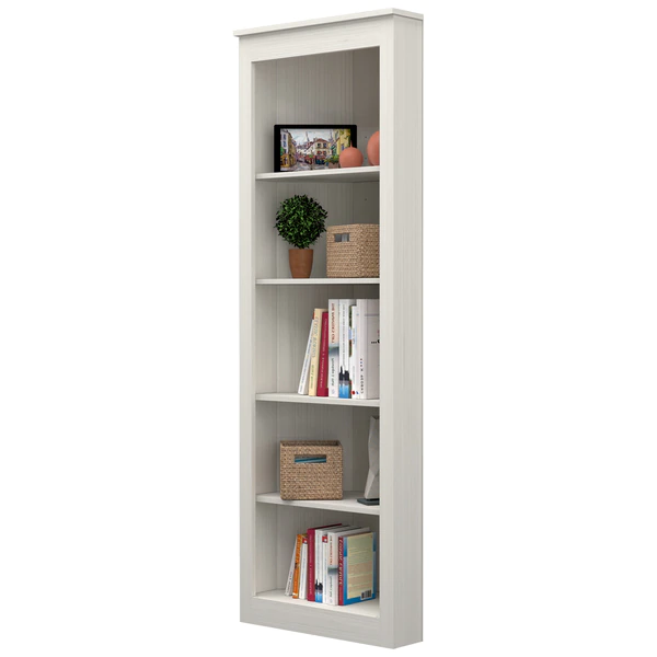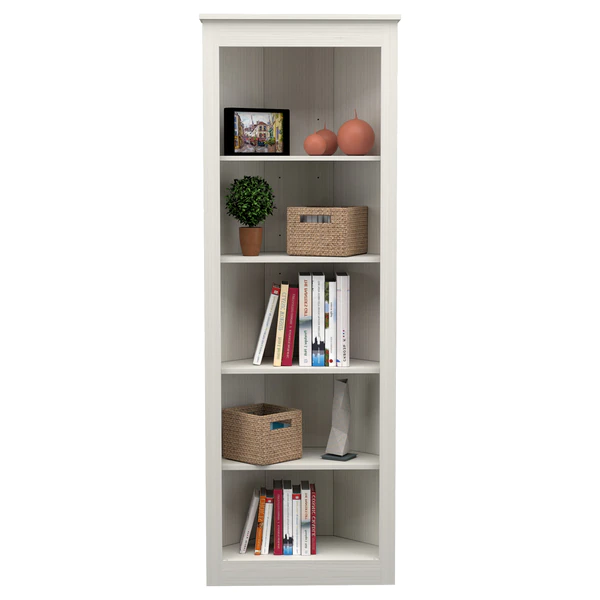 Five Shelf Corner Bookshelf by Inval® finished in a rich "Washed Oak" laminate. This beautiful contemporary two-shelf corner bookshelf unit keeps your home organized and clutter-free while occupying little space. This bookshelf features five (5) open shelves to hold books, framed photos, decorative items and more. This is an ideal storage solution for any room and coordinates well with various ranges of decor styles. Constructed from manufactured wood laminated on both sides with durable melamine which is stain, heat and scratch resistant.