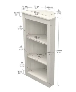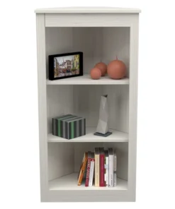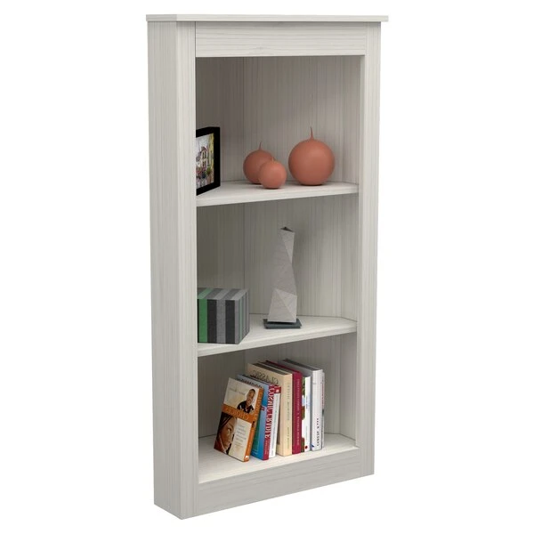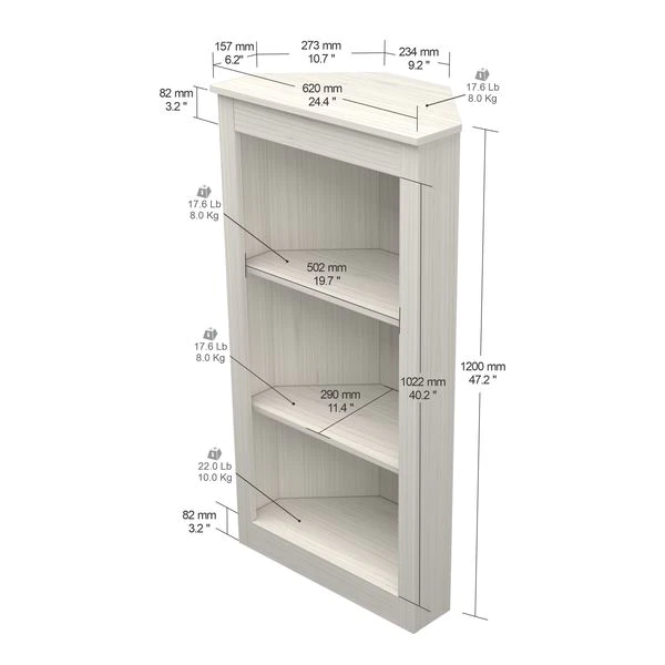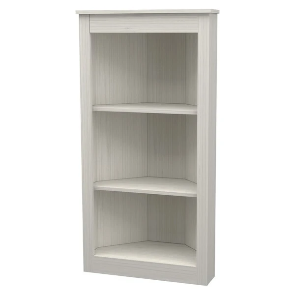Three Shelf Corner Bookshelf by Inval® finished in a rich "Washed Oak" laminate. This beautiful contemporary two-shelf corner bookshelf unit keeps your home organized and clutter-free while occupying little space. This bookshelf features three (3) open shelves to hold books, framed photos, decorative items and more. This is an ideal storage solution for any room and coordinates well with various ranges of decor styles. Constructed from manufactured wood laminated on both sides with durable melamine which is stain, heat and scratch resistant