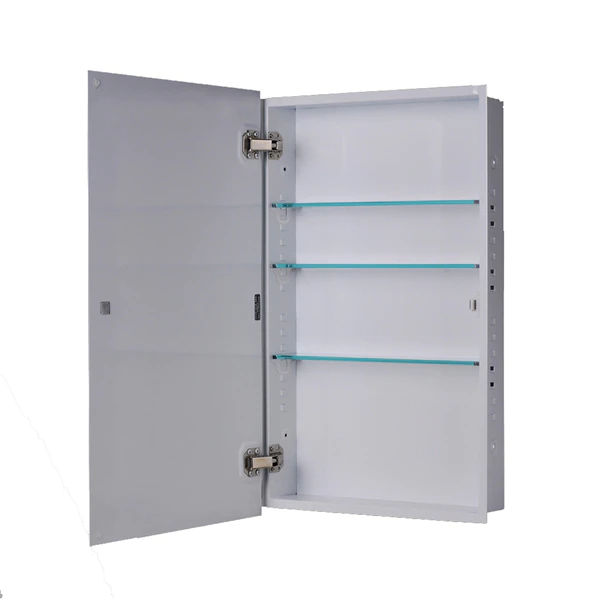 Our medicine cabinets are designed for a contemporary modern look. European style hinging allows for the door to pivot over the body of the cabinet creating a clean aesthetic. Beautifully crafted white baked enamel steel interior provides a rust resistant finish. These modern cabinets can be installed together in tandem or alongside a mirror for a sleek design. Mirrored side kits are available for surface mounted units.