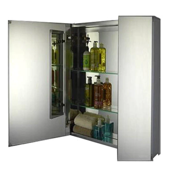 Our medicine cabinets provide elegant solutions to your bathroom storage needs. Constructed of brushed satin anodized aluminum, these cabinets combine luxury with a no maintenance finish. Interior and exterior mirrors are set in a superior solid aluminum door construction. Slotted finger pull along the edge and underside of the door allow for easy function. Soft close gravity hinge operation. The cabinets can be installed both recessed and surface mounted. Floating mirrored side kits and hardware are included for either installation.