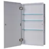 Our medicine cabinets provide elegant solutions to your bathroom storage needs. Constructed of brushed satin anodized aluminum, these cabinets combine luxury with a no maintenance finish. Interior and exterior mirrors are set in a superior solid aluminum door construction. Slotted finger pull along the edge and underside of the door allow for easy function. Soft close gravity hinge operation. The cabinets can be installed both recessed and surface mounted. Floating mirrored side kits and hardware are included for either installation.