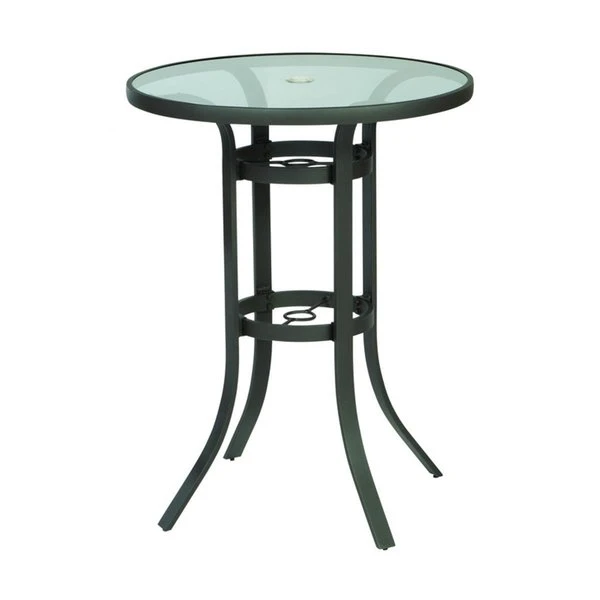 Icarus Round Glass Balcony Table SpecificationsSize: 30 x 30 x 39 in.Color: BrownTable Shape: RoundCollection: IcarusTable Top Material: GlassStyle: BalconyUV Protected: YesWeather Resistant: YesAssembly Required: YesFrame Material: AluminiumWeight: 28.6 lbs