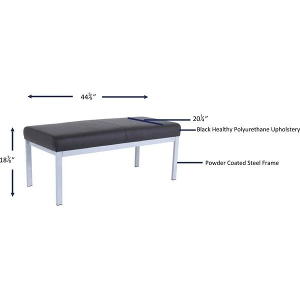 This bench is specially designed for healthcare facilities. Thick seat cushion is upholstered in healthcare-grade, antimicrobial vinyl so the product lasts longer and it's easier to clean. Healthcare Guest Chair also features a steel frame powder-coated in silver. Weight capacity is 275 lb.