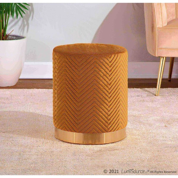 Bring a note of glamour to your home with the chic design of the by LumiSource. Featuring a soft cushioned velvet upholstery, stylish chevron pattern and a chic gold metal base. Available in a variety of upholstery colors, choose the one that fits your space the best.