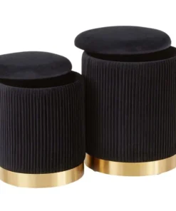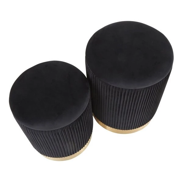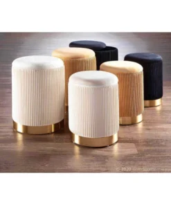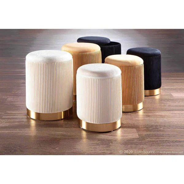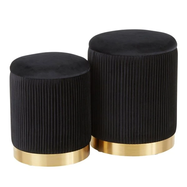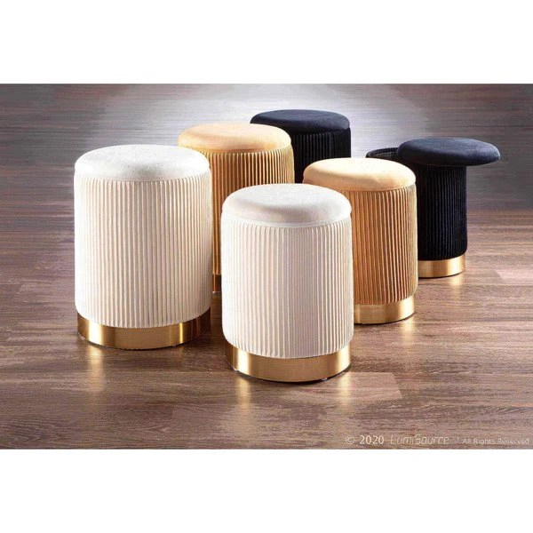 Bring a note of glamour to your home with the chic design of the Marla Pleated Nesting Ottoman Set by LumiSource. This set features a luxuriously soft pleated velvet and chic gold metal base. The smaller ottoman nests inside the larger ottoman for a space-saving design. Available in a variety of upholstery color options, choose the one that fits your space the best.