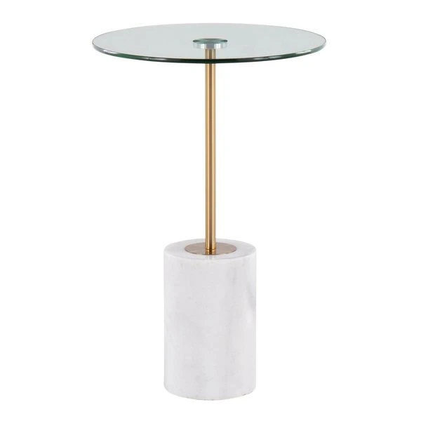 A mix of marble and metal creates a contemporary look that will fit any room. The by Lumisource is the perfect size for smaller spaces. With a clear glass top and white marble base, the will look great next to any sofa, accent chair, or even in a bedroom.