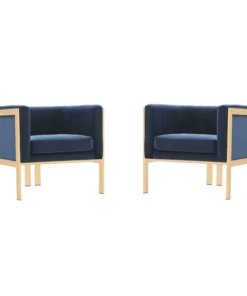 Lounge in 1920s luxury. This sophisticated accent chair is a modern, assertive take on the classic Art Deco style. An open architectural frame in polished brass wraps around the plush velvet seat, creating an inviting combination of simplicity and luxury. The seat’s backrest is accented with vertical stitching to complement it's geometric frame. The symmetrical, streamlined look will add an evocative touch of distinguished ‘20s glamour to any space.