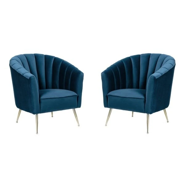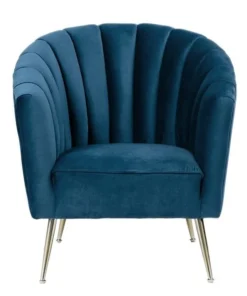 Utterly captivating. Elegance meets coziness in this exquisite accent chair. With a wraparound back, deep vertical channeling, and extra-plush padding, the shell-style seat surrounds you in comfort. Sumptuous velvet upholstery is soft to the touch with lustrous depth and show-stopping color. Set on angled stainless steel legs with gold tone finish, this chair gives style a whole new meaning.